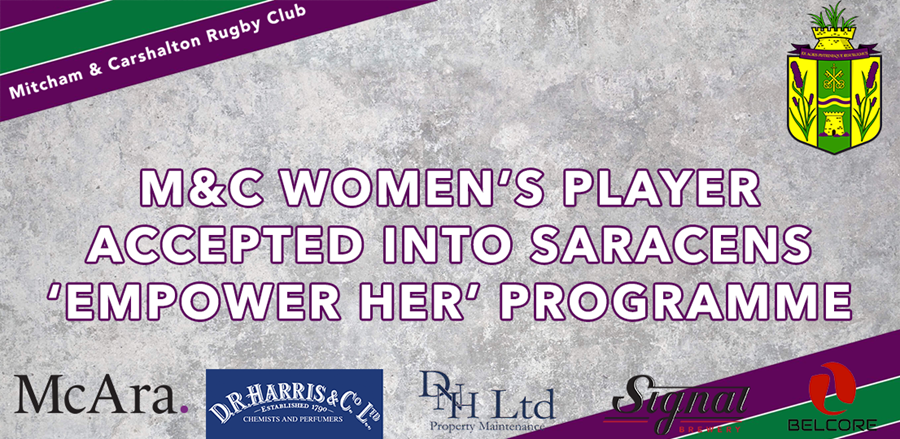 Mitcham & Carshalton are delighted to announce our own Charlie Speller has been accepted onto the Saracens mentoring programme ‘Empower her’ The 12 month programme will see her have mentors, attend work shops, develop leadership skills and of course spend time up at Saracens! Congrats from everyone at M&C!