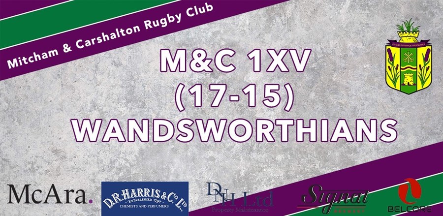 Mitcham & Carshalton 1XV came out close winners in a nail biting encounter at Wandsworthians' ground in Richmond. Tries came from our Skipper and Second row Fergus Garnade, with another try from Centre Corey Griffiths, with Griffths adding the extra with Conversions and a penalty.